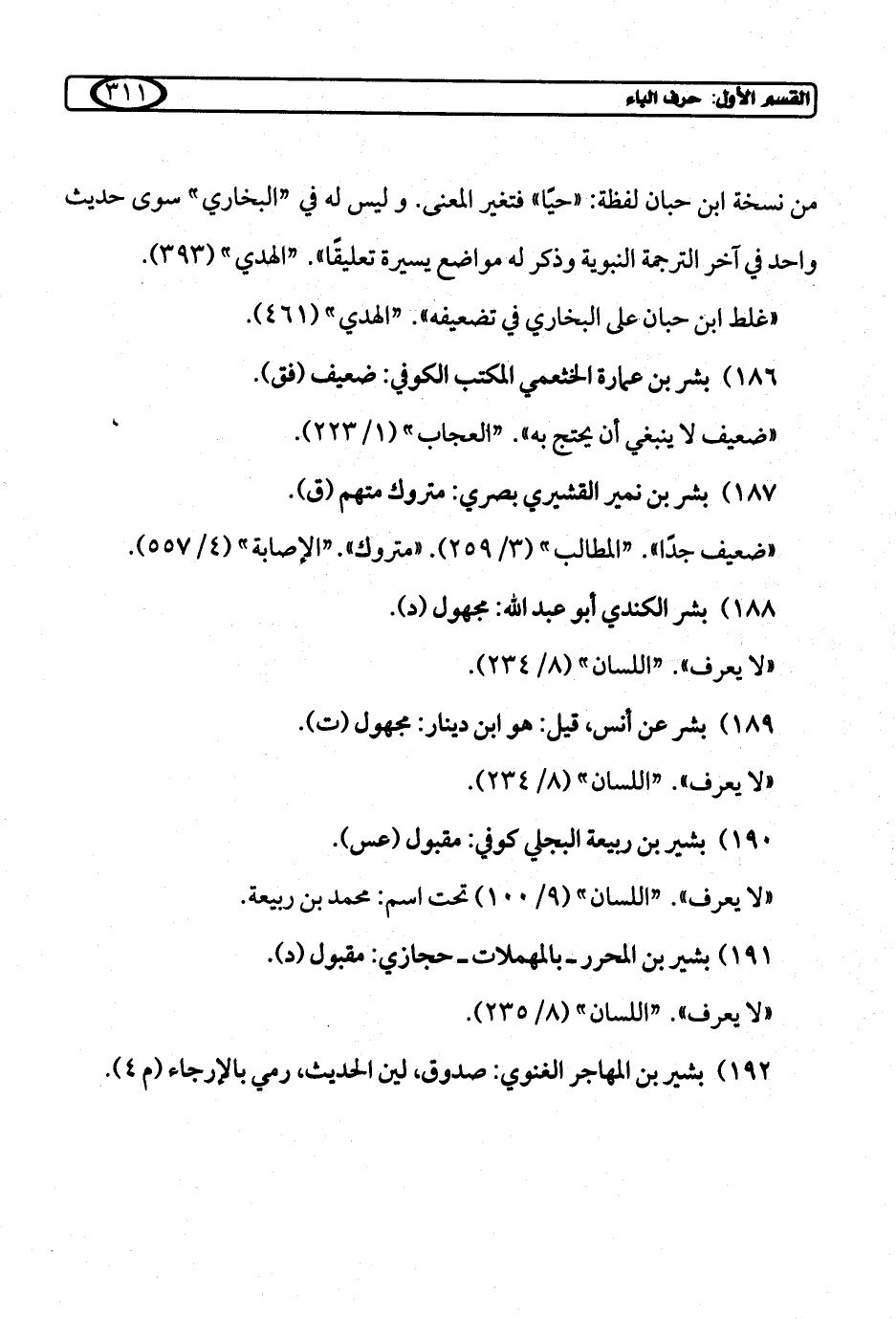 "غلط ابن حبان على البخاري في تضعيفه". "الهدي" (461).