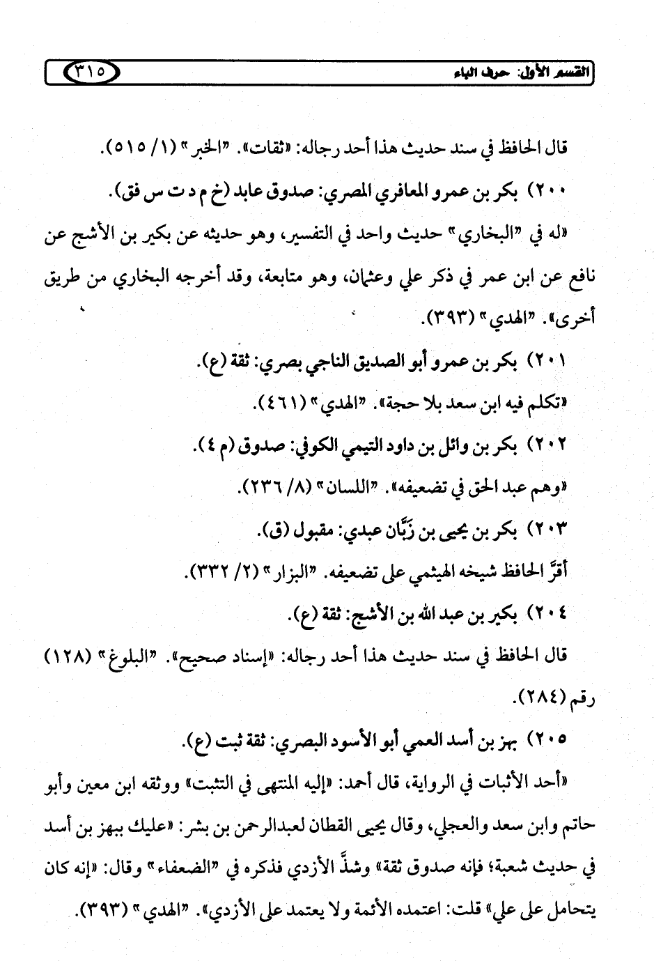 205) بهز بن أسد العمي أبو الأسود البصري: ثقة ثبت (ع).