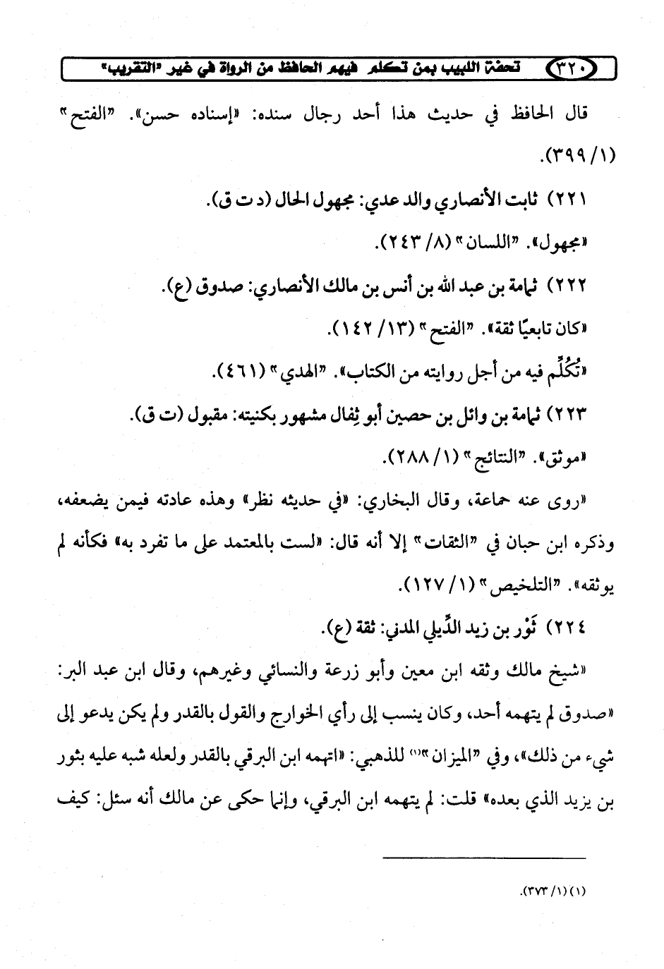 223) ثمامة بن وائل بن حصين أبو ثِفال مشهور بكنيته: مقبول (ت ق).