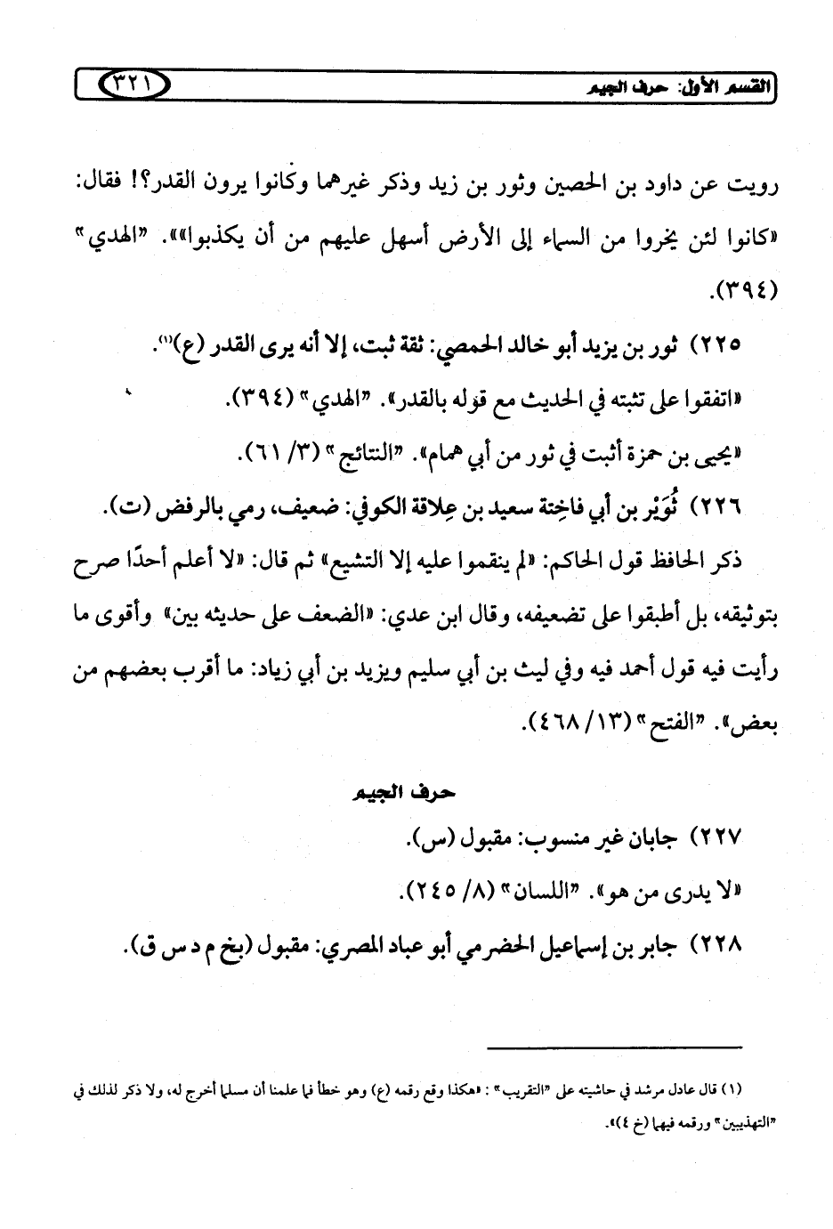 225) ثور بن يزيد أبو خالد الحمصي: ثقة ثبت، إلا أنه يرى القدر (ع) (¬1).