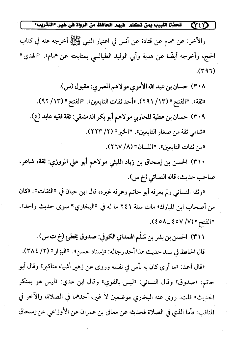311) الحسن بن بشر بن سَلْم الهمداني الكوفي: صدوق يخطئ (خ ت س).