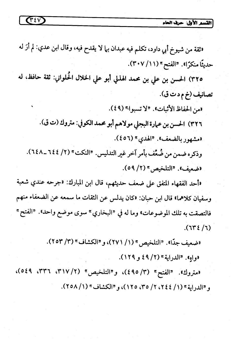 325) الحسن بن علي بن محمد الهذلي أبو علي الخلال الحُلواني: ثقة حافظ، له تصانيف (خ م د ت ق).