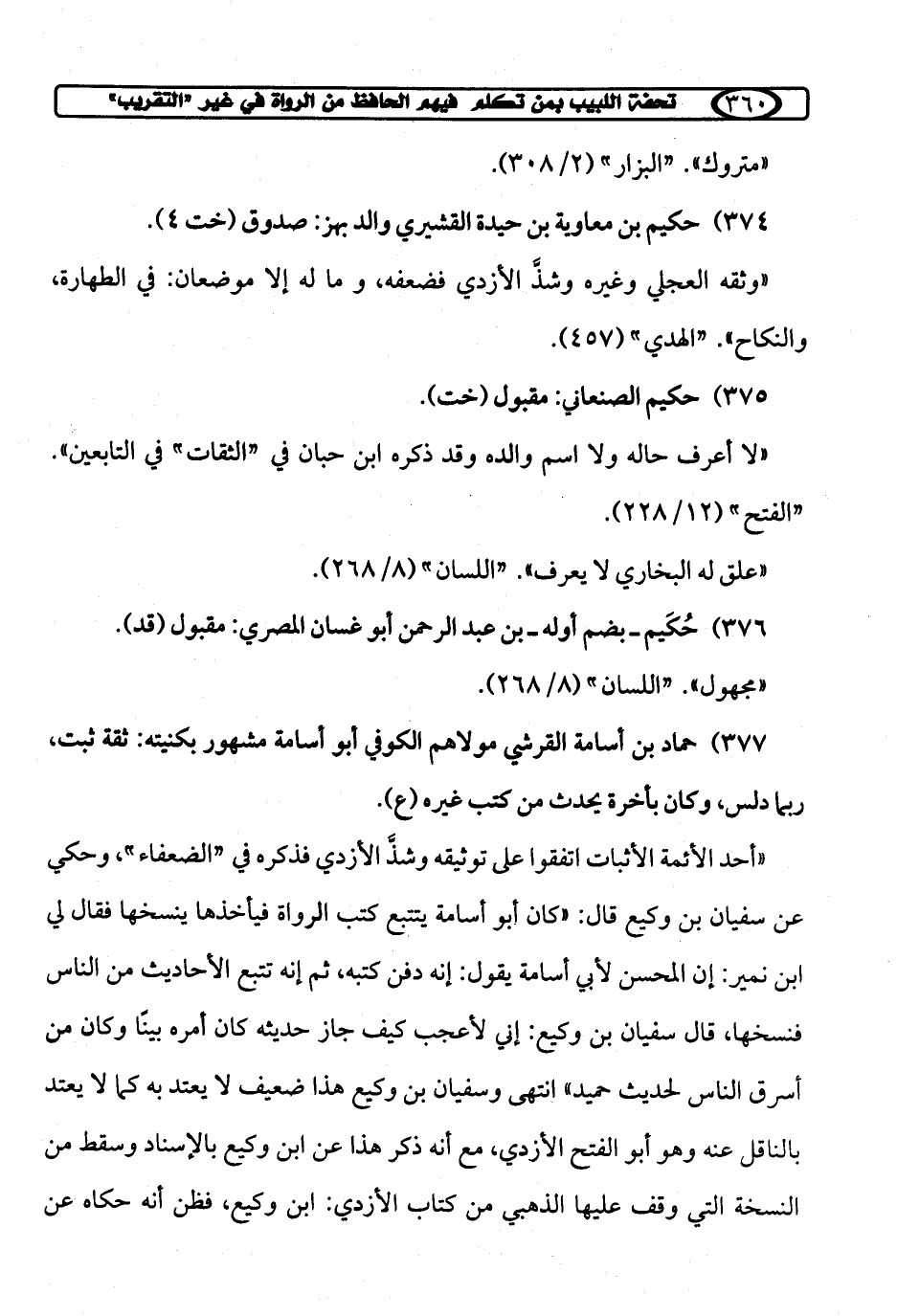 376) حُكَيم - بضم أوله- بن عبد الرحمن أبو غسان المصري: مقبول (قد).