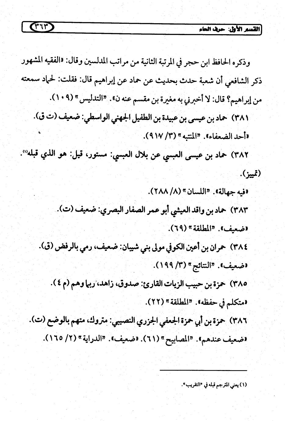 385) حمزة بن حبيب الزيات القارئ: صدوق، زاهد، ربما وهم (م 4).