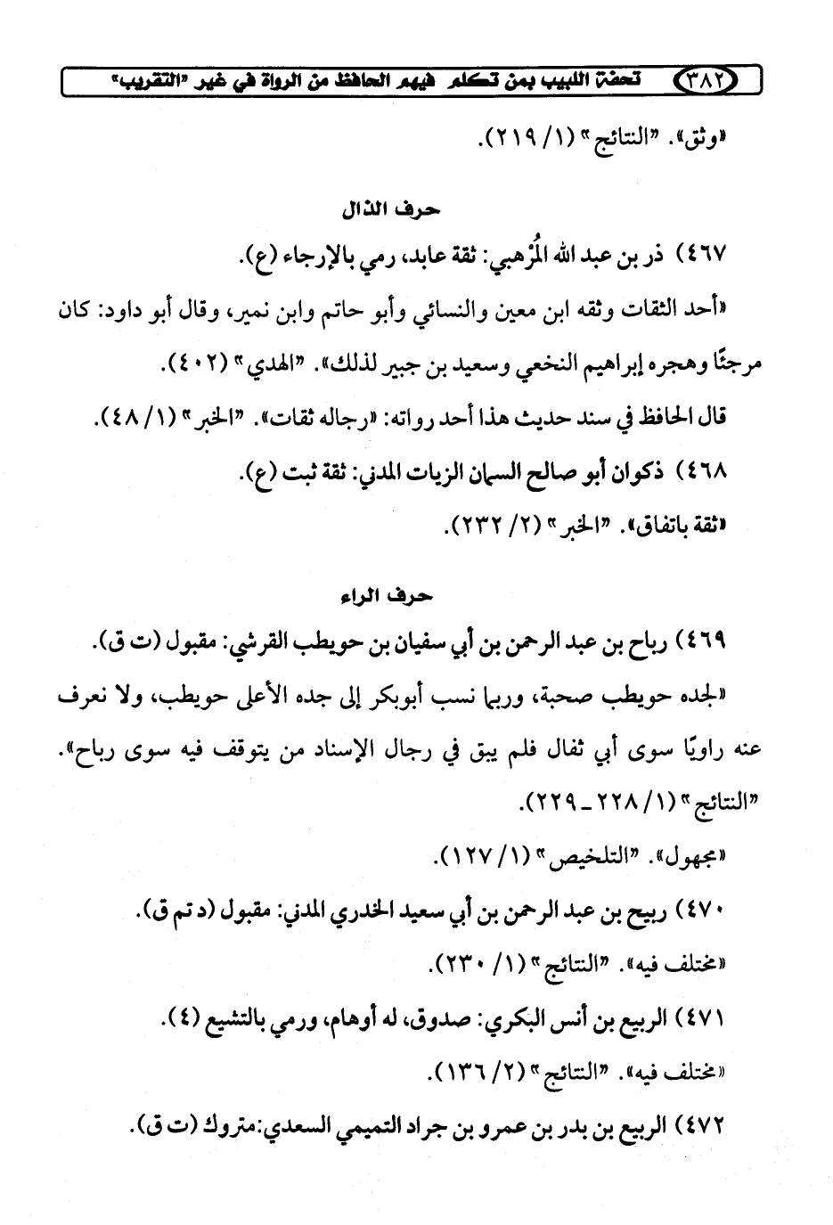 467) ذر بن عبد الله المُرْهبي: ثقة عابد، رمي بالإرجاء (ع).