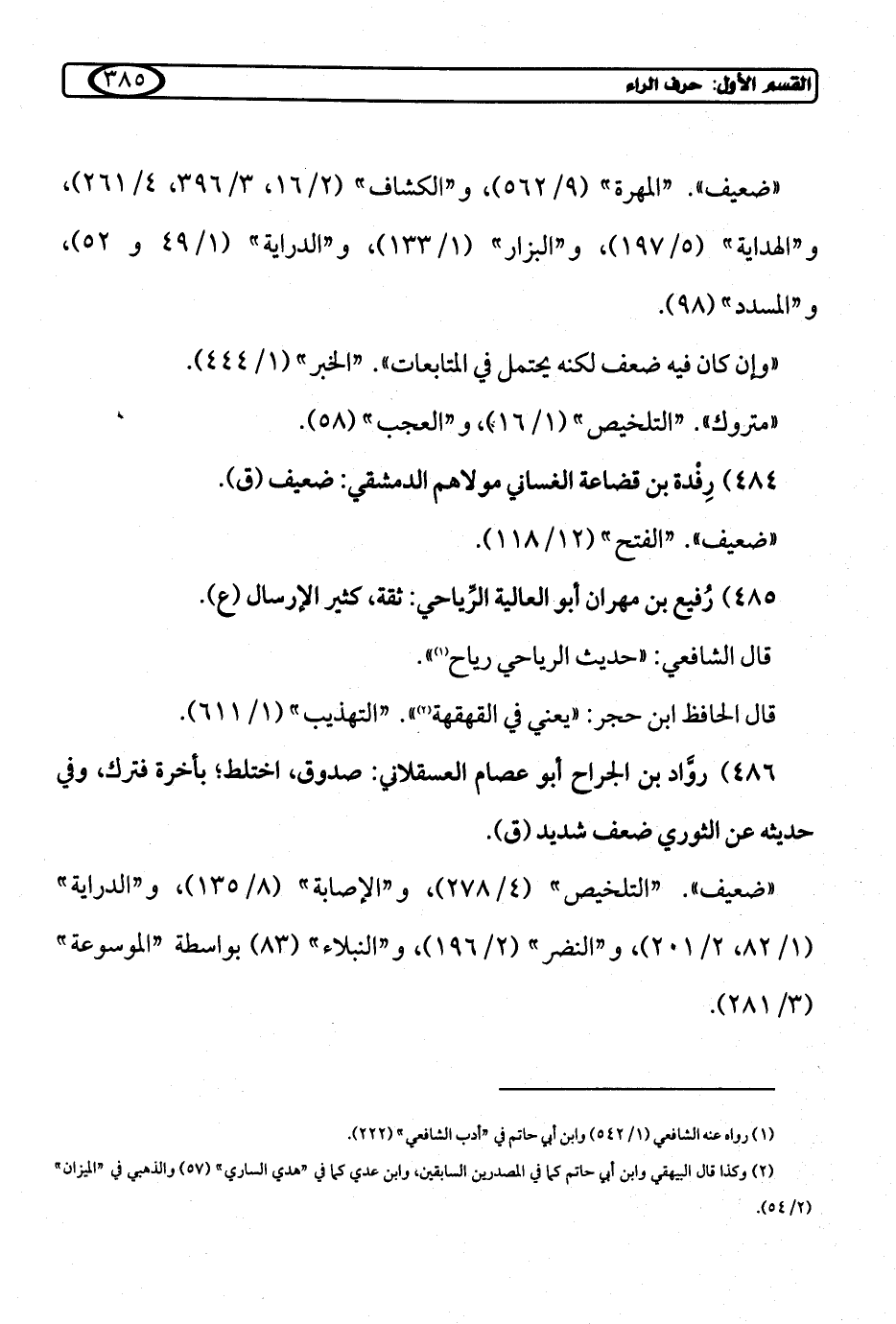 486) روَّاد بن الجراح أبو عصام العسقلاني: صدوق، اختلط؛ بأخرة فترك، وفي حديثه عن الثوري ضعف شديد (ق).