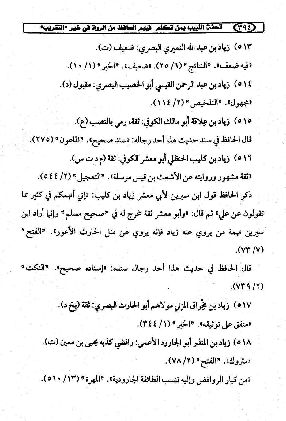 515) زياد بن عِلاقة أبو مالك الكوفي: ثقة، رمي بالنصب (ع).
