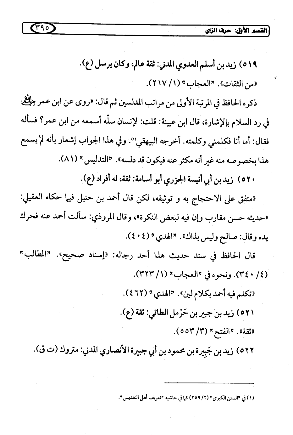 519) زيد بن أسلم العدوي المدني: ثقة عالم، وكان يرسل (ع).