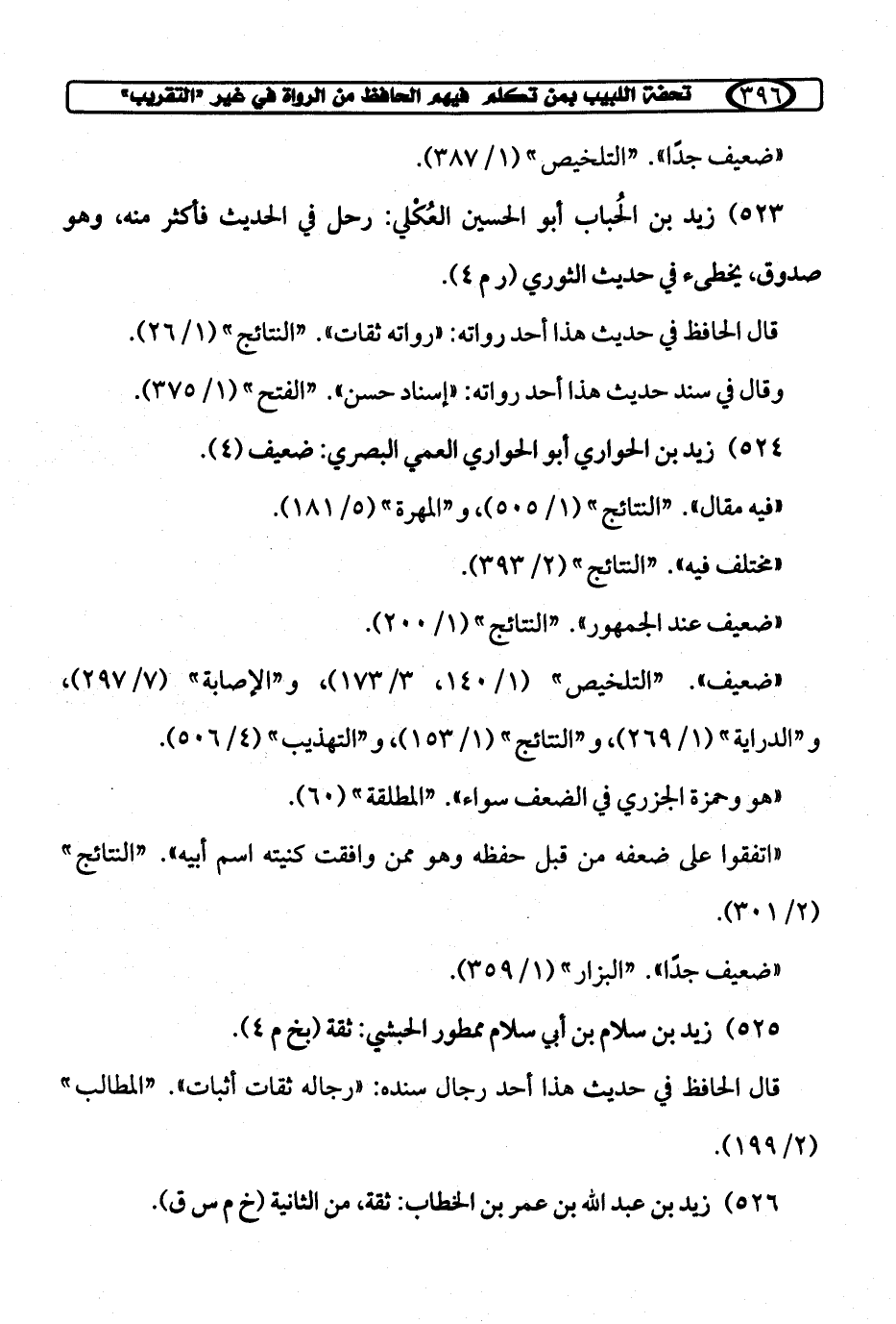 523) زيد بن الحُباب أبو الحسين العُكْلي: رحل في الحديث فأكثر منه، وهو صدوق، يخطئ في حديث الثوري (رم 4).