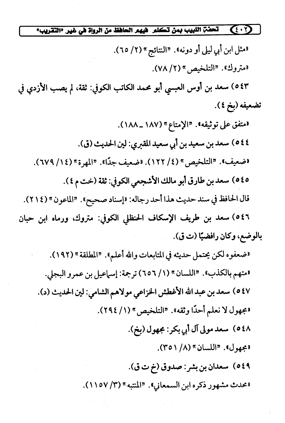 546) سعد بن طريف الإسكاف الحنظلي الكوفي: متروك، ورماه ابن حبان بالوضع، وكان رافضيًا (ت ق).