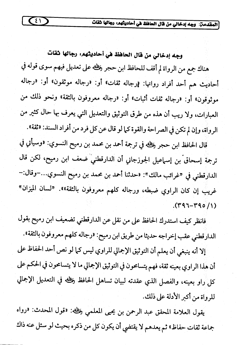 يقول العلامة المحقق عبد الرحمن بن يحيى المعلمي رحمه الله: "قول المحدث: "رواه جماعة ثقات حفاظ" ثم يعدهم لا يقتضي أن يكون كل من ذكره بحيث لو سئل عنه ذاك