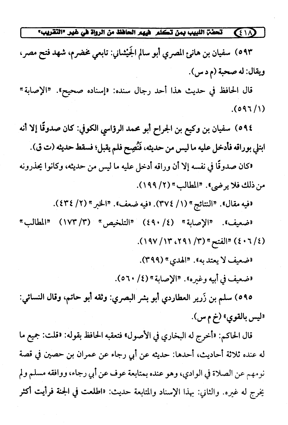كتاب تحفة اللبيب بمن تكلم فيهم الحافظ ابن حجر من الرواة في غير «التقريب» (اسم الجزء: 1)