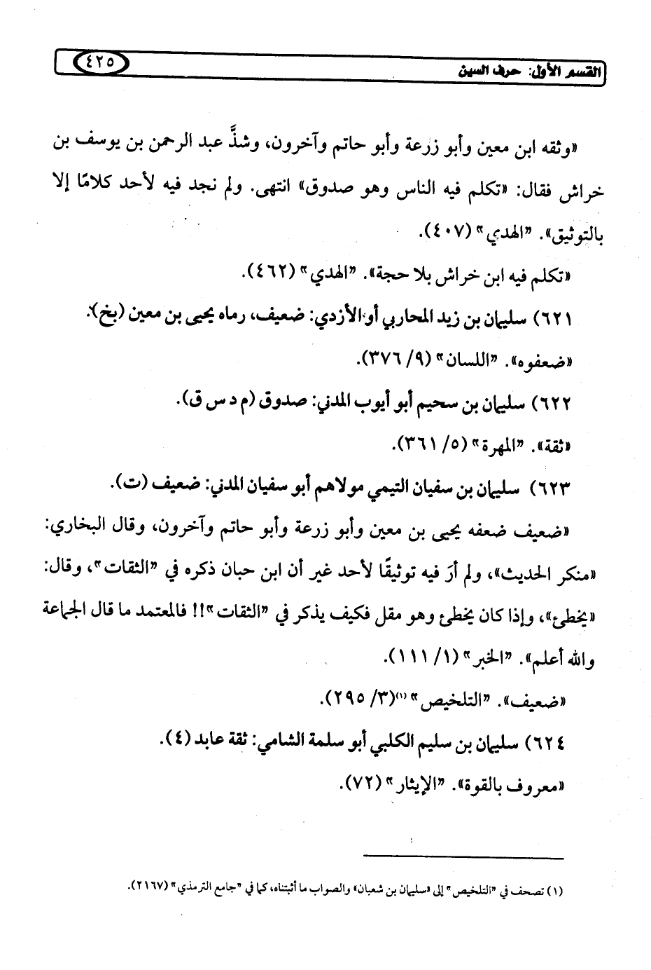 621) سليمان بن زيد المحارب أو الأزدي: ضعيف، رماه يحيى بن معين (بخ).