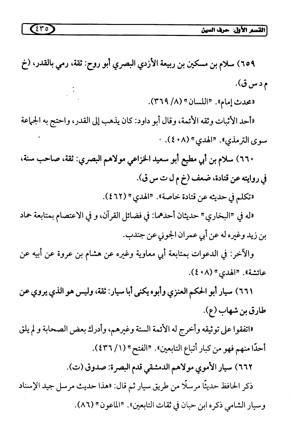 659) سلام بن مسكين بن ربيعة الأزدي البصري أبو روح: ثقة، رمي بالقدر، (خ م د س ق).