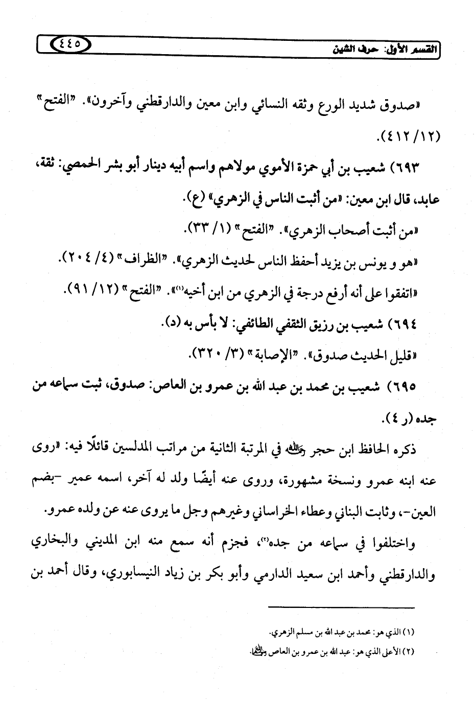 695) شعيب بن محمد بن عبد الله بن عمرو بن العاص: صدوق، ثبت سماعه من جده (ر 4).