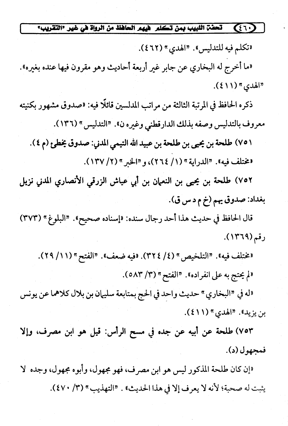 كتاب تحفة اللبيب بمن تكلم فيهم الحافظ ابن حجر من الرواة في غير «التقريب» (اسم الجزء: 1)