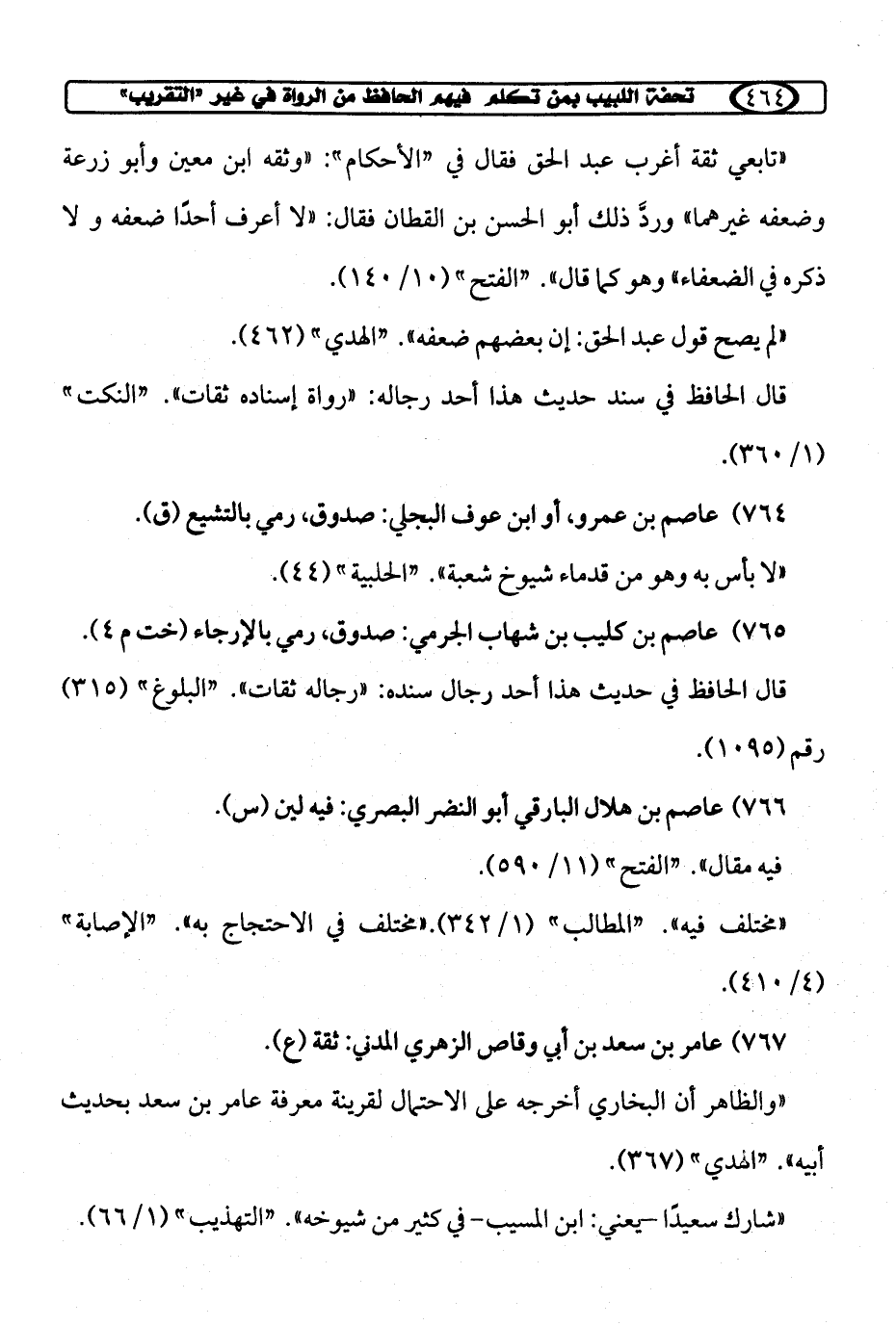كتاب تحفة اللبيب بمن تكلم فيهم الحافظ ابن حجر من الرواة في غير «التقريب» (اسم الجزء: 1)