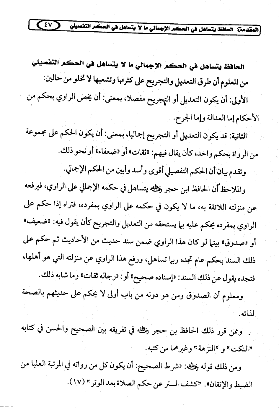 الحافظ يتساهل في الحكم الإجمالي ما لا يتساهل في الحكم التفصيلي