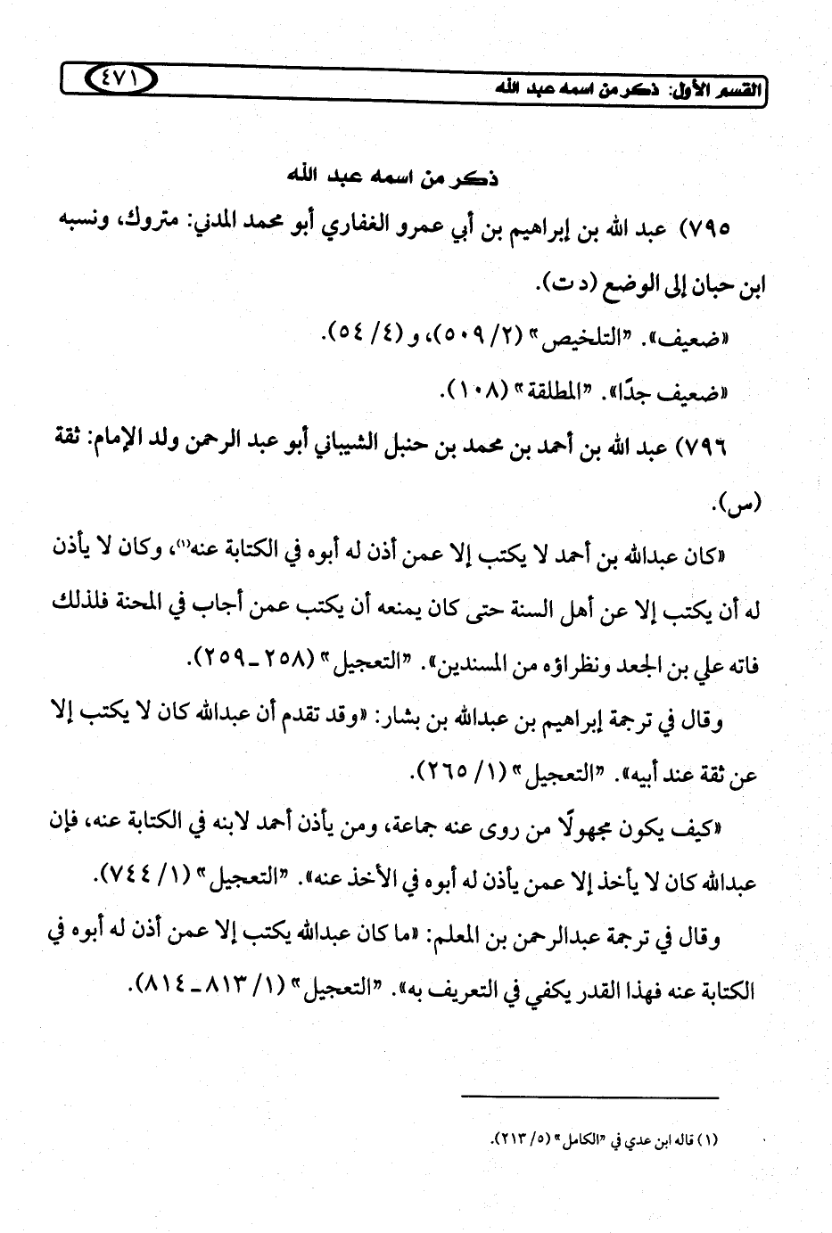 796) عبد الله بن أحمد بن محمد بن حنبل الشيباني أبو عبد الرحمن ولد الإمام: ثقة (س).
