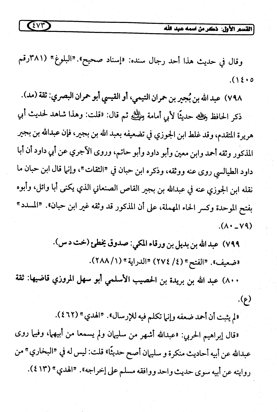 "قال إبراهيم الحربي: "عبد الله أشهر من سليمان ولم يسمعا من أبيهما، وفيما روى عبد الله عن أبيه أحاديث منكرة وسليمان أصح حديثًا" قلت: ليس له في "البخاري" من روايته عن أبيه سوى حديث واحد ووافقه مسلم على إخراجه". "الهدي" (413).