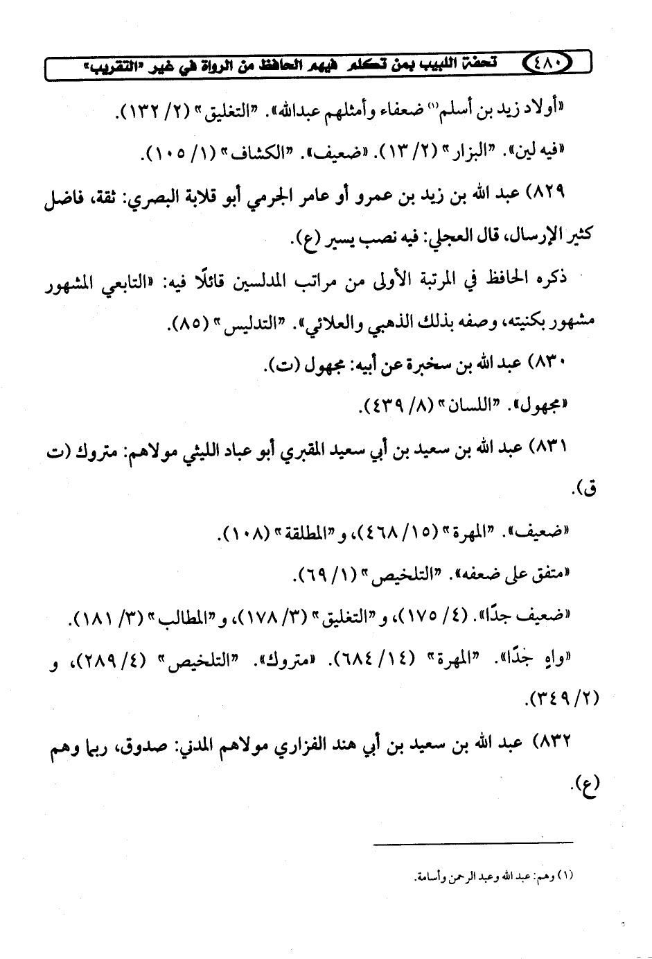 كتاب تحفة اللبيب بمن تكلم فيهم الحافظ ابن حجر من الرواة في غير «التقريب» (اسم الجزء: 1)