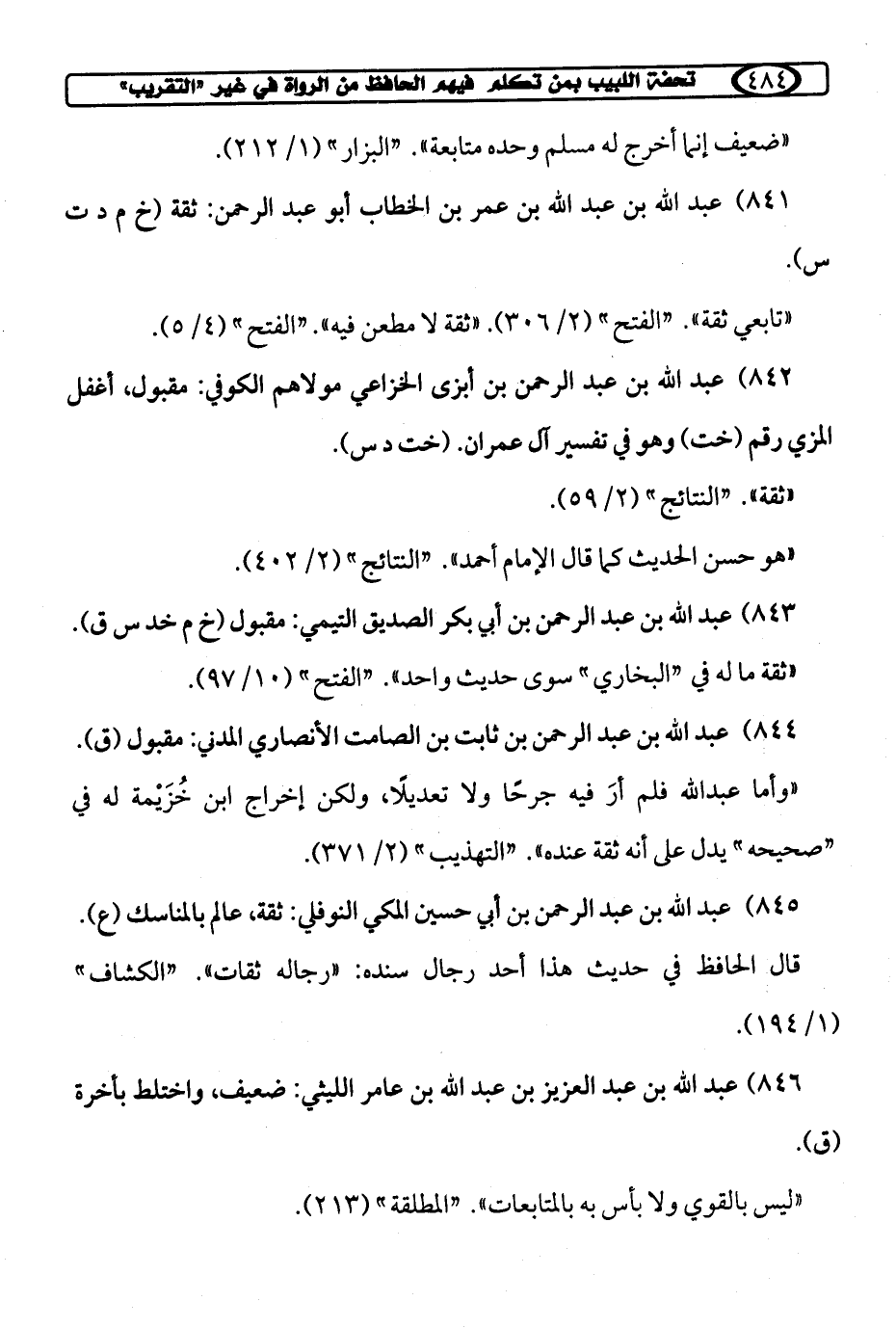 "ليس بالقوي ولا بأس به بالمتابعات". "المطلقة" (213).