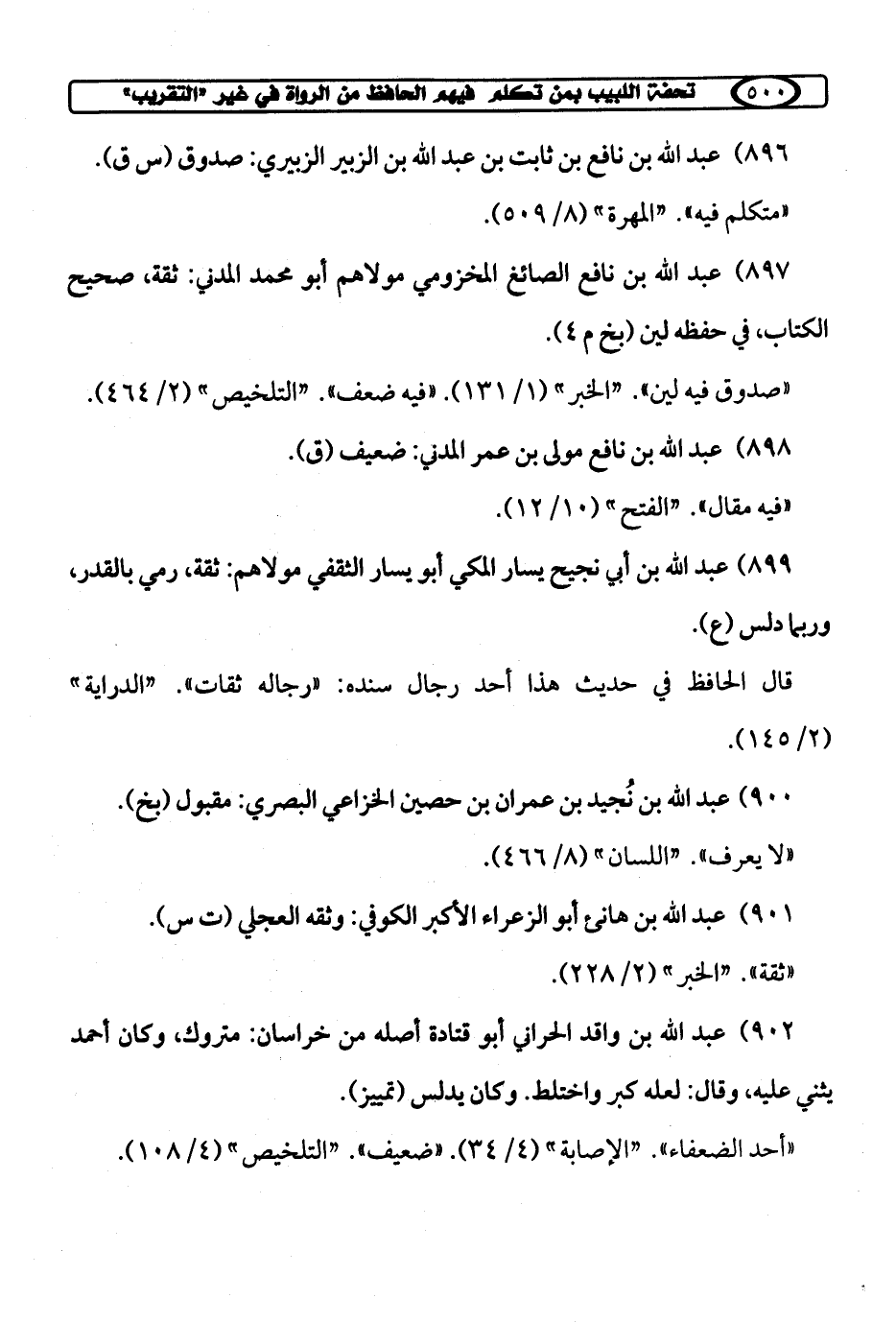 896) عبد الله بن نافع بن ثابت بن عبد الله بن الزبير الزبيري: صدوق (س ق).