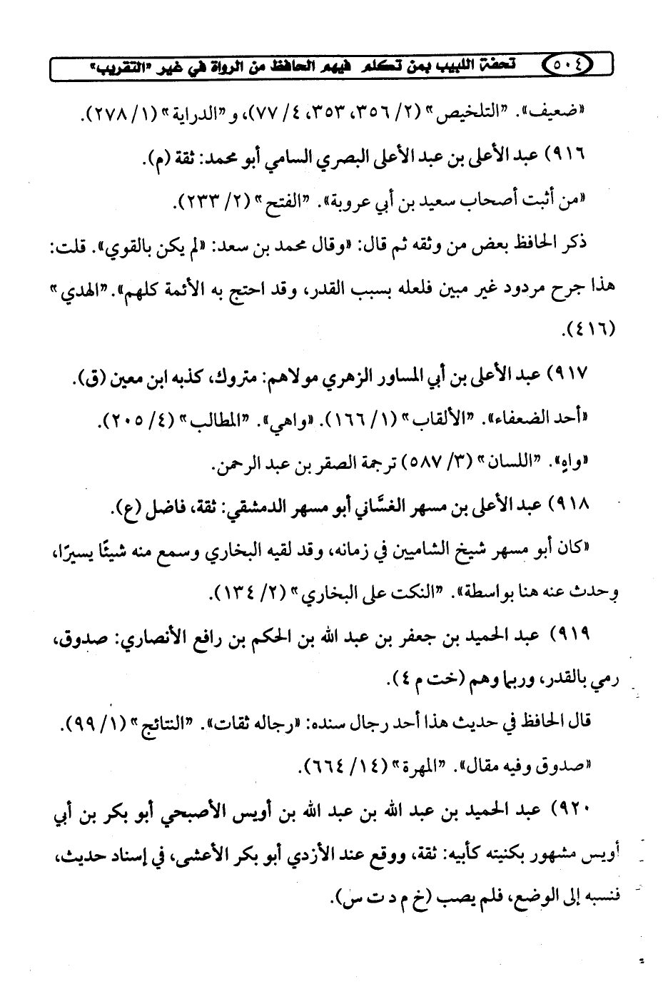 916) عبد الأعلى بن عبد الأعلى البصري السامي أبو محمد: ثقة (م).