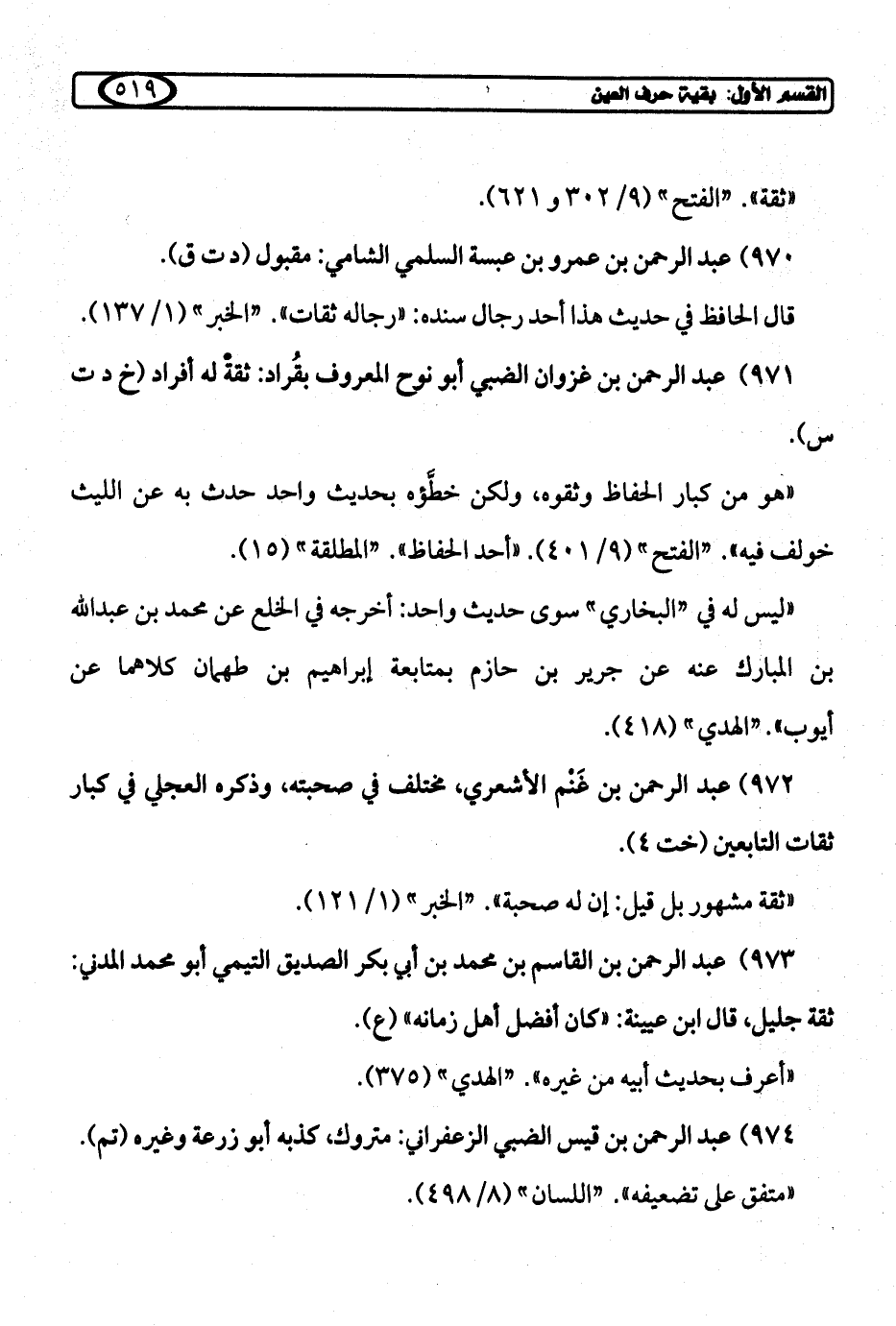 971) عبد الرحمن بن غزوان الضبي أبو نوح المعروف بقُراد: ثقة له أفراد (خ د ت س).