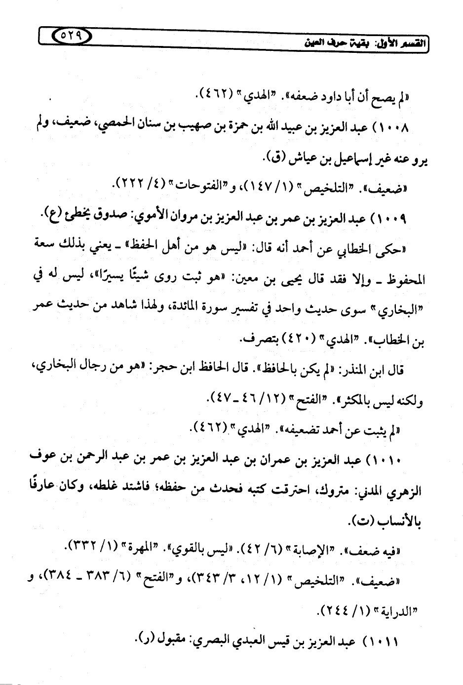 1008) عبد العزيز بن عبيد الله بن حمزة بن صهيب بن سنان الحمصي: ضعيف، ولم يرو عنه غير إسماعيل بن عياش (ق).