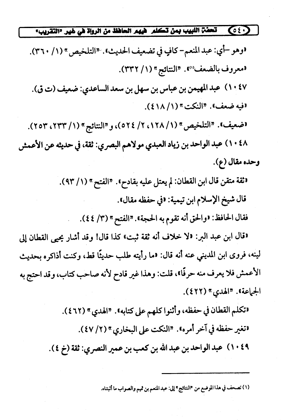 1048) عبد الواحد بن زياد العبدي مولاهم البصري: ثقة، في حديثه عن الأعمش وحده مقال (ع).