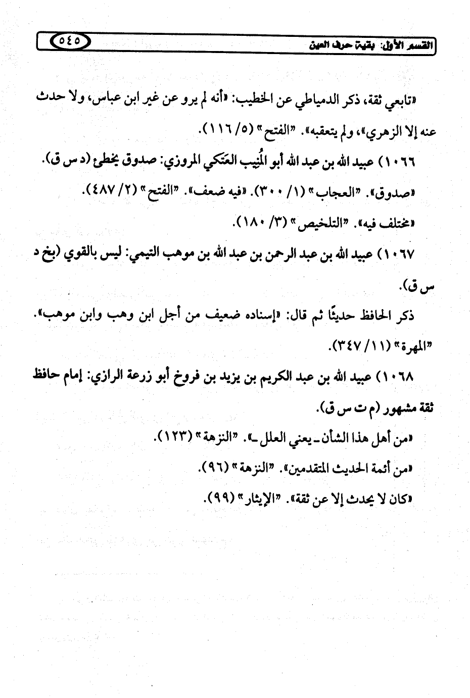 1068) عبيد الله بن عبد الكريم بن يزيد بن فروخ أبو زرعة الرازي: إمام حافظ ثقة مشهور (م ت س ق).