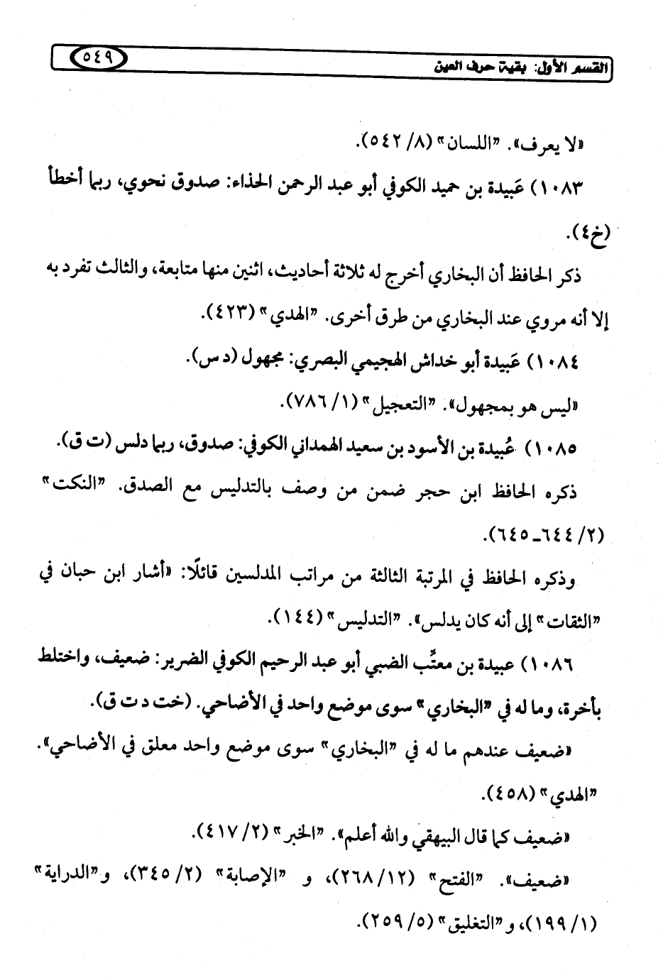 1083) عَبيدة بن حميد الكوفي أبو عبد الرحمن الحذاء: صدوق نحوي، ربما أخطأ (خ 4).