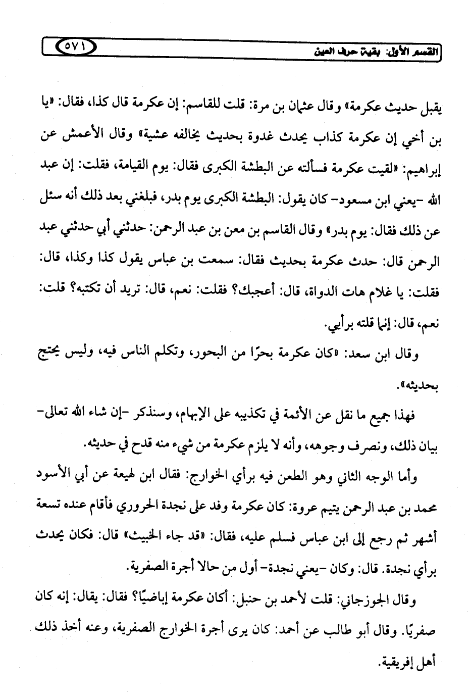 فهذا جميع ما نقل عن الأئمة في تكذيبه على الإبهام، وسنذكر - إن شاء الله تعالى- بيان ذلك، ونصرف وجوهه، وأنه لا يلزم عكرمة من شيء منه قدح في حديثه.