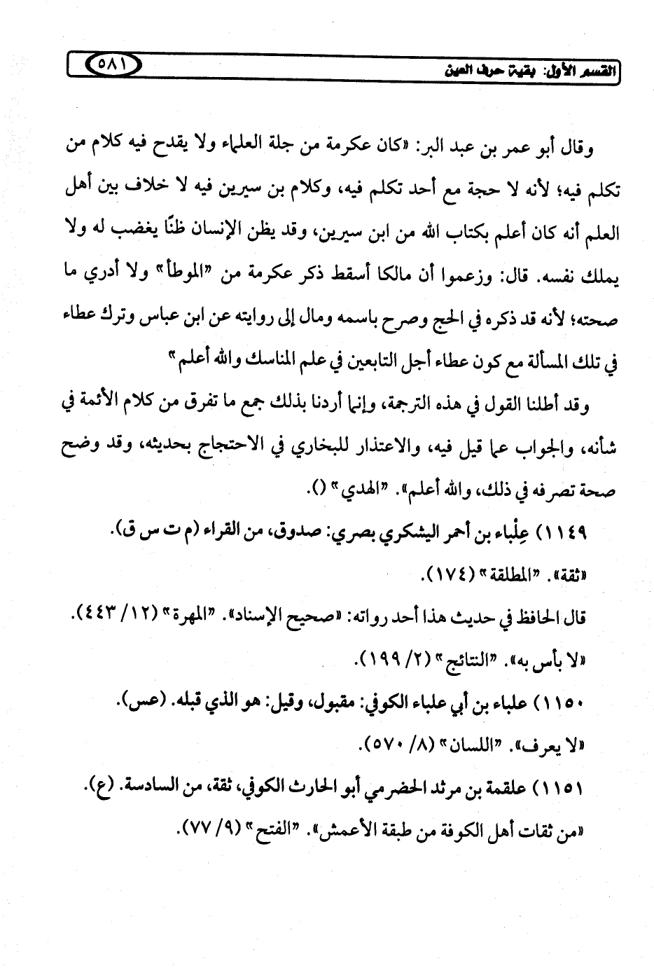 1149) عِلْباء بن أحمر اليشكري بصري: صدوق، من القراء (م ت س ق).