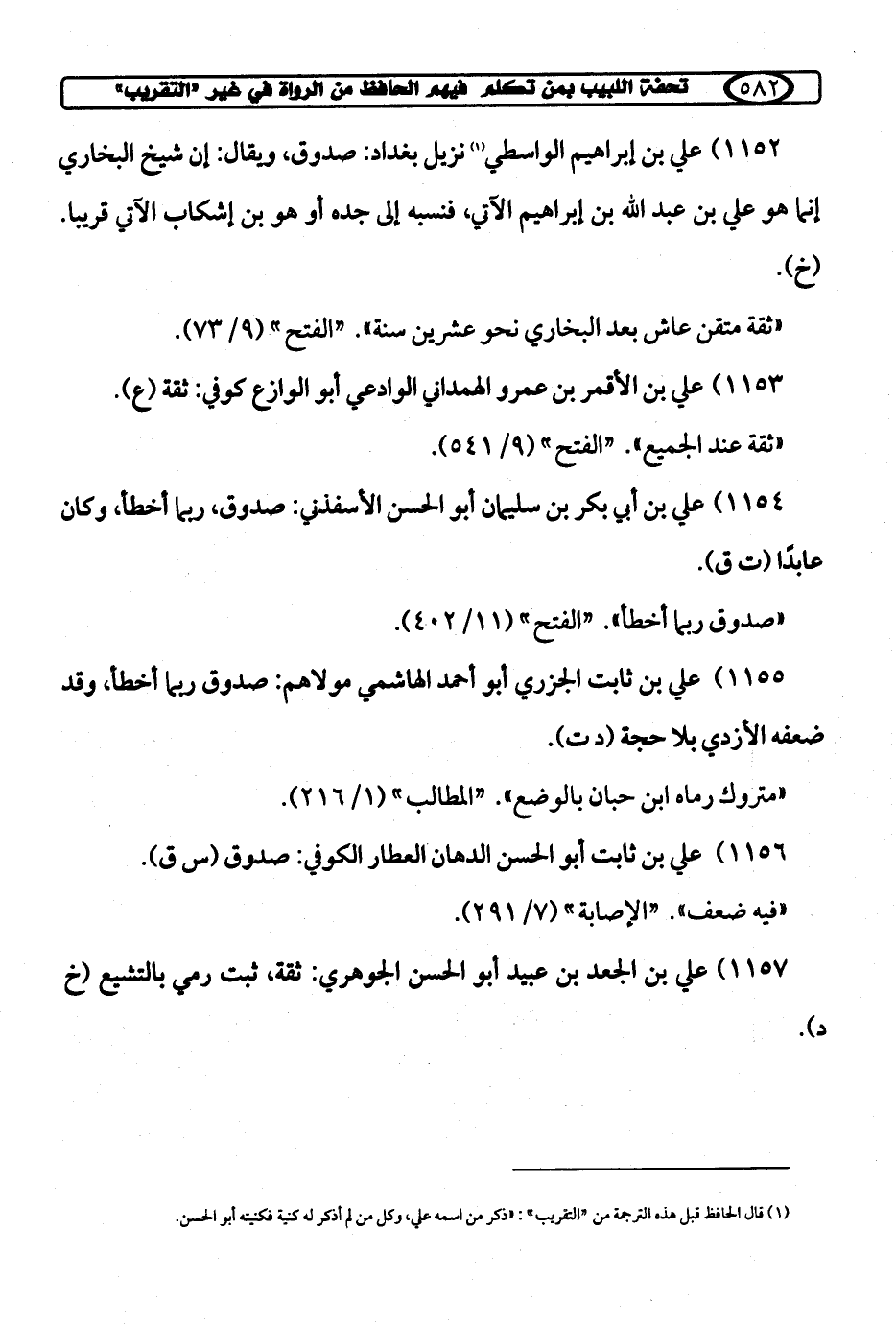 1154) علي بن أبي بكر بن سليمان أبو الحسن الأسفذني: صدوق، ربما أخطأ، وكان عابدًا (ت ق).