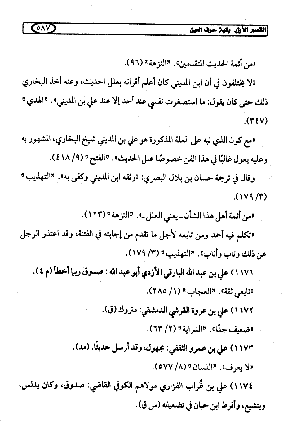 1171) علي بن عبد الله البارقي الأزدي أبو عبد الله: صدوق ربما أخطأ (م 4).
