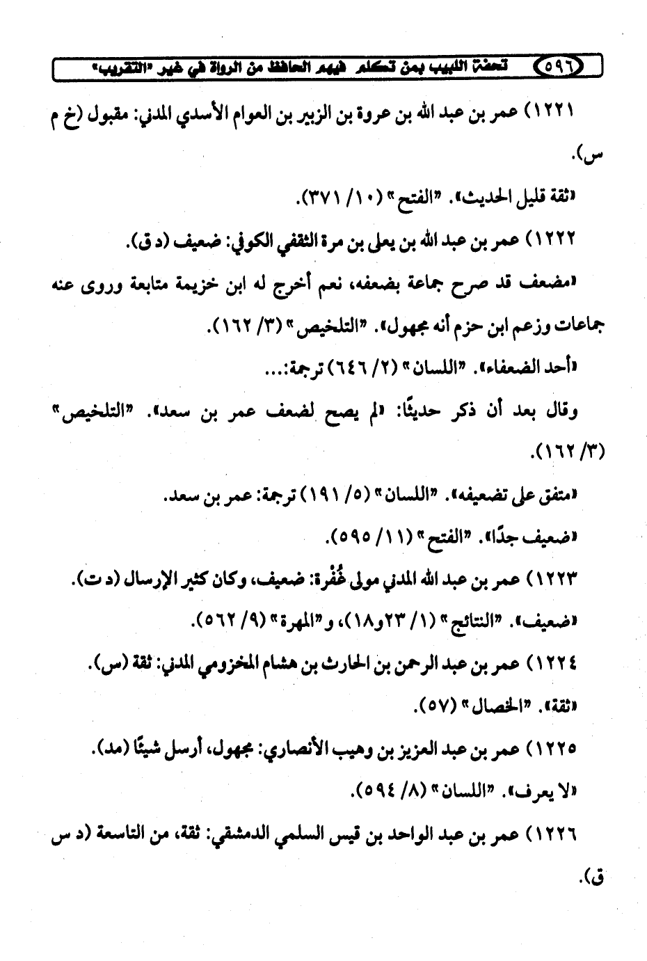 1221) عمر بن عبد الله بن عروة بن الزبير بن العوام الأسدي المدني: مقبول (خ م س).