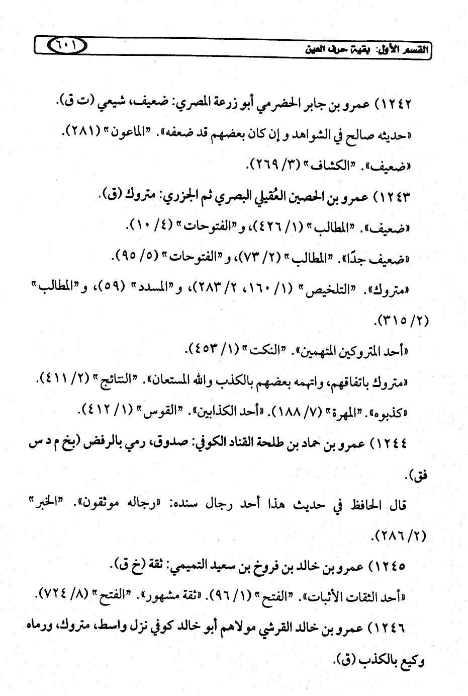 1242) عمرو بن جابر الحضرمي أبو زرعة المصري: ضعيف، شيعي (ت ق).