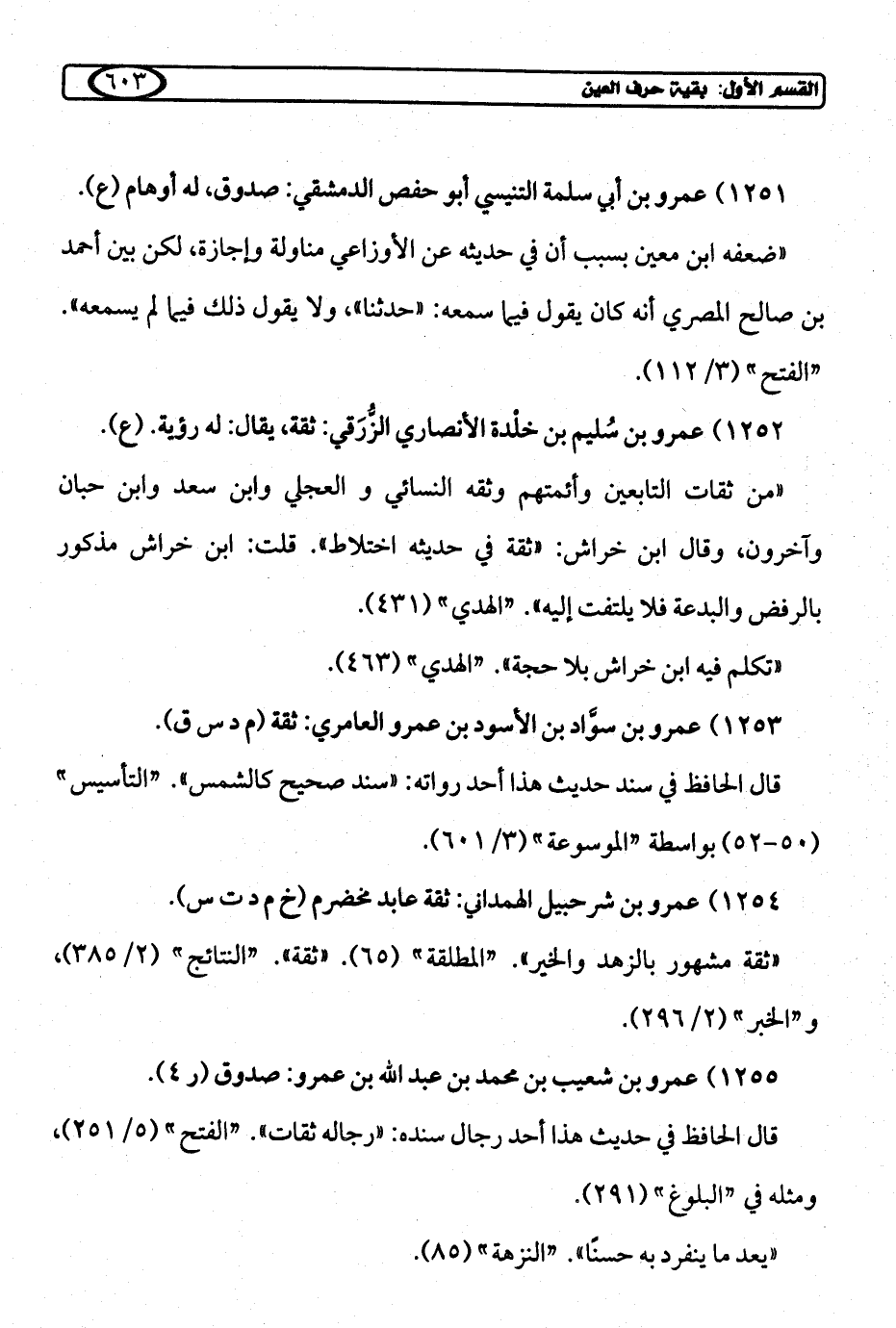 1255) عمرو بن شعيب بن محمد بن عبد الله بن عمرو: صدوق (ر 4).