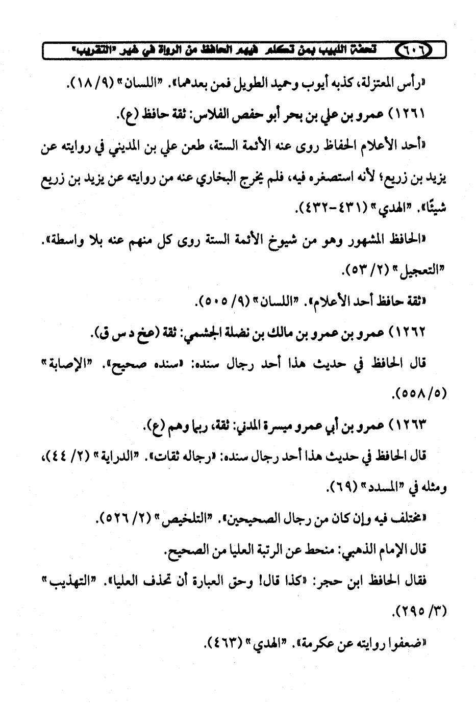 1261) عمرو بن علي بن بحر أبو حفص الفلاس: ثقة حافظ (ع).
