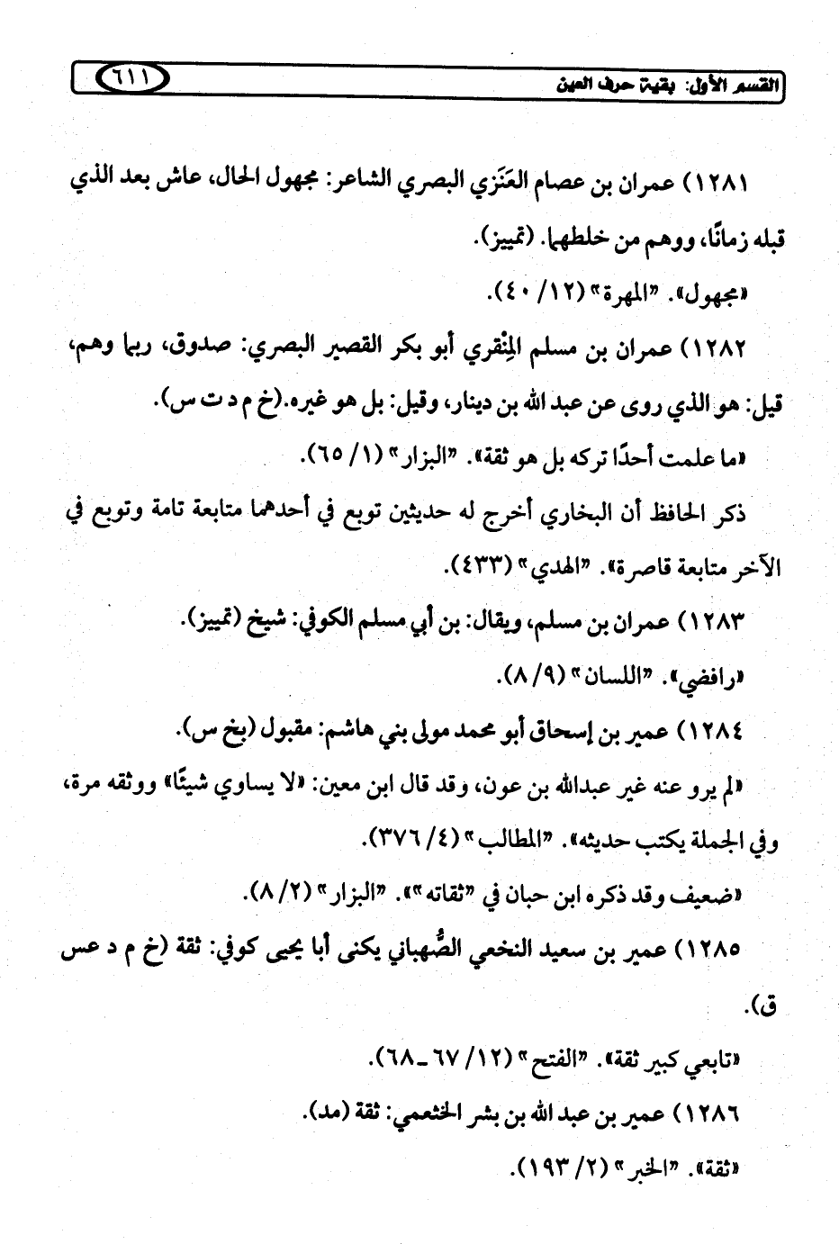 1281) عمران بن عصام العَنَزي البصري الشاعر: مجهول الحال، عاش بعد الذي قبله زمانًا، ووهم من خلطهما. (تمييز).