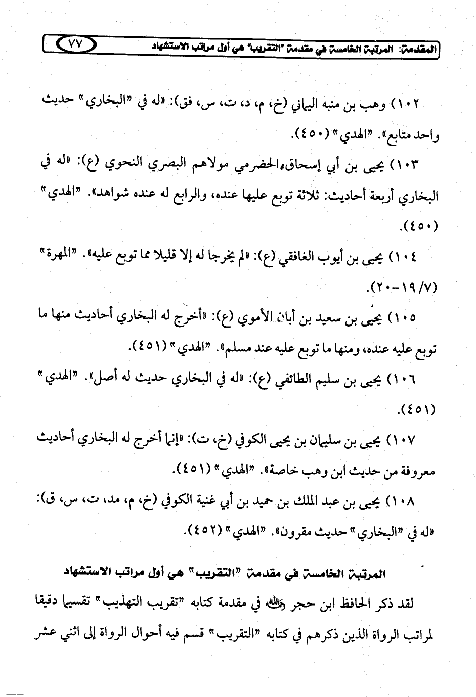 المرتبة الخامسة في مقدمة "التقريب" هي أول مراتب الاستشهاد