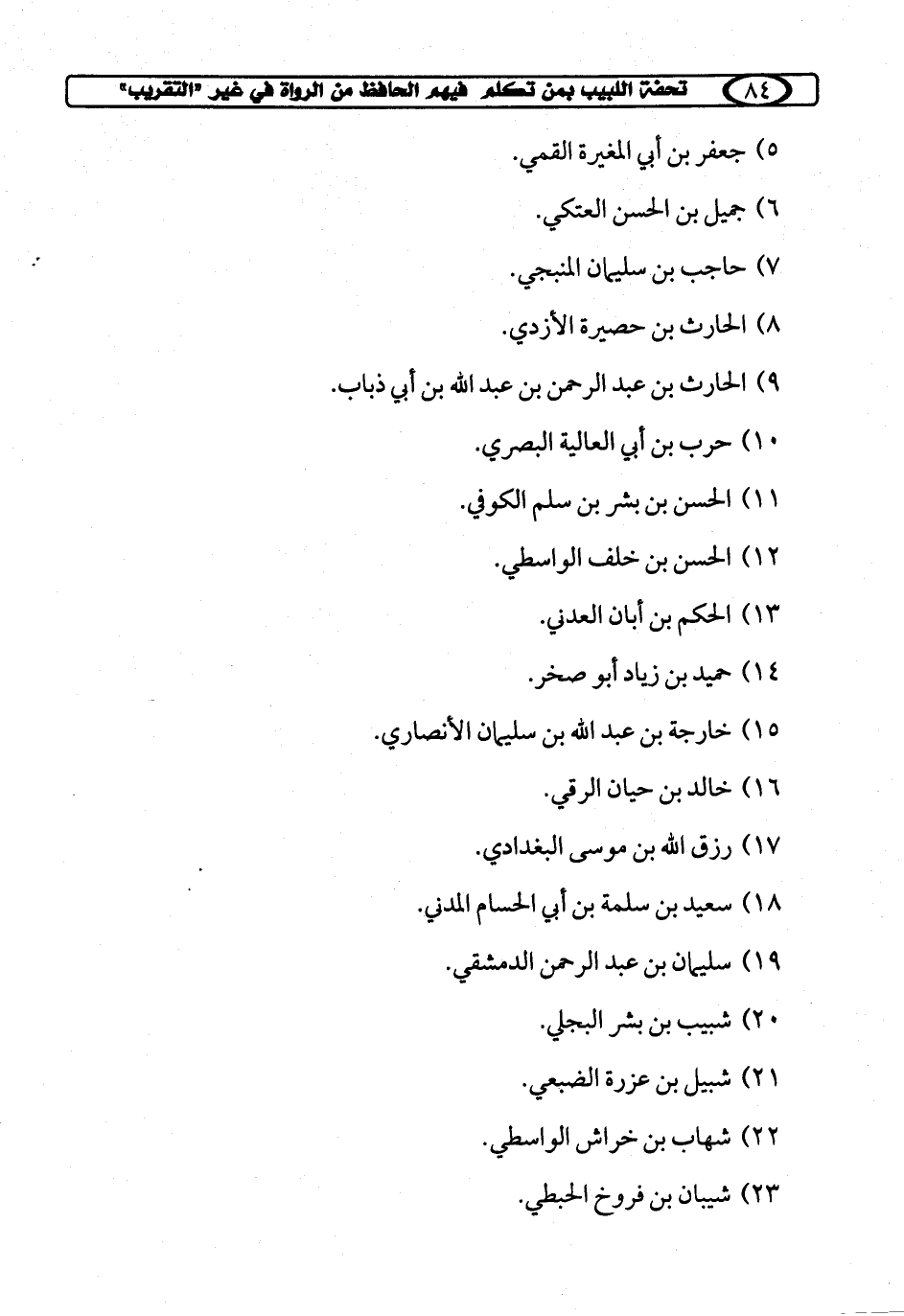 كتاب تحفة اللبيب بمن تكلم فيهم الحافظ ابن حجر من الرواة في غير «التقريب» (اسم الجزء: 1)