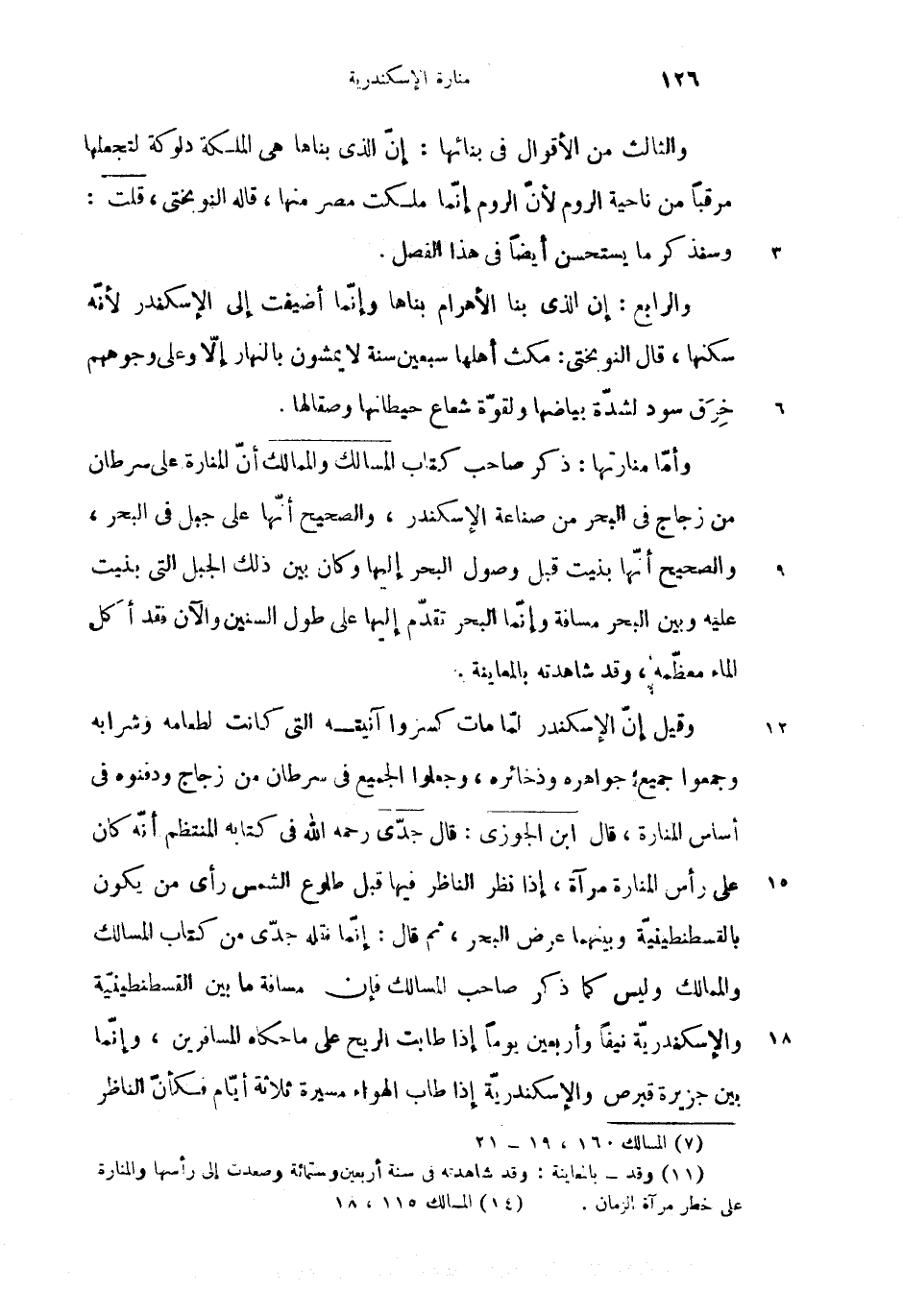 (2) وقد-بالمعاينة: وقد شاهدته فى سنة أربعين وستمائة وصعدت إلى رأسها والمنارة على خطر مرآة الزمان.
