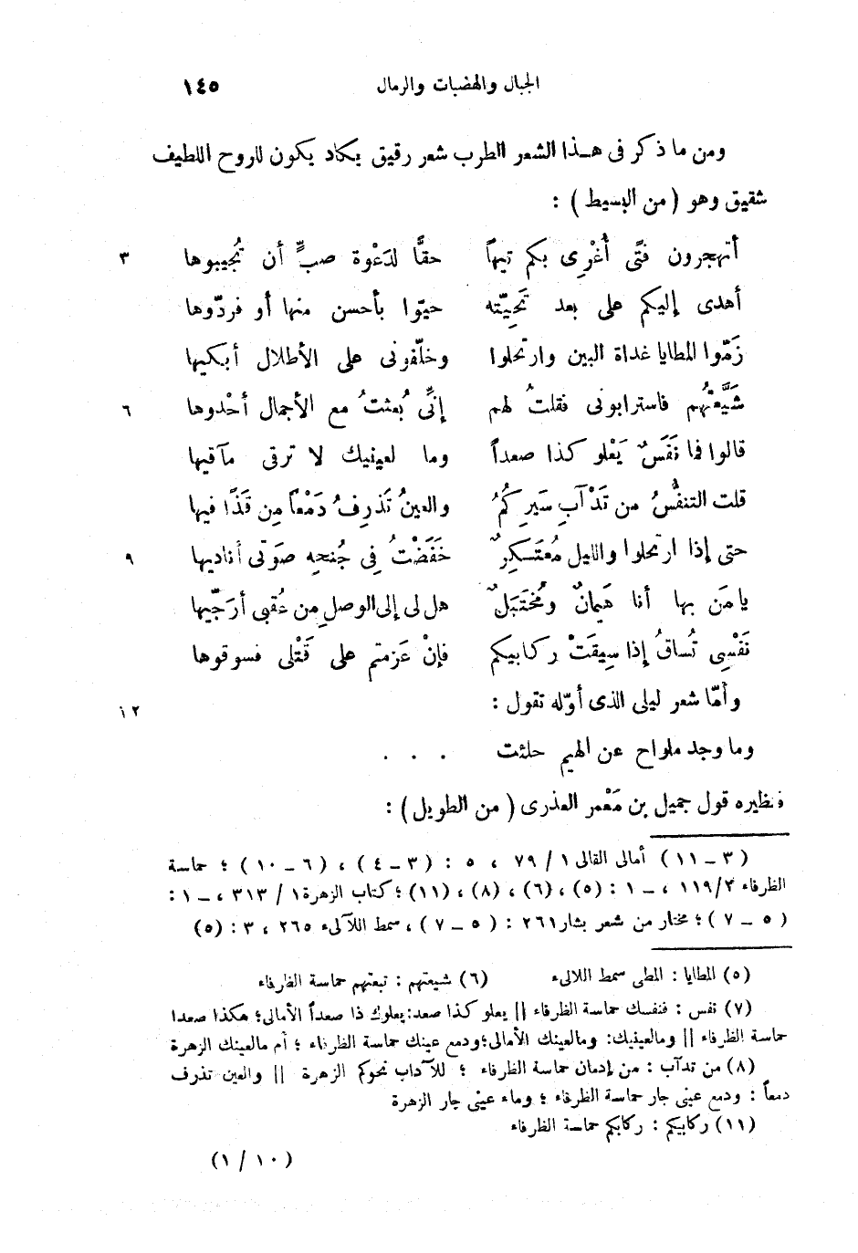 (5) من تدآب: من إدمان حماسة الظرفاء؛ للآداب نحوكم الزهرة||والعين تذرف دمعا: ودمع عينى جار حماسة الظرفاء؛ وما عينى جار الزهرة