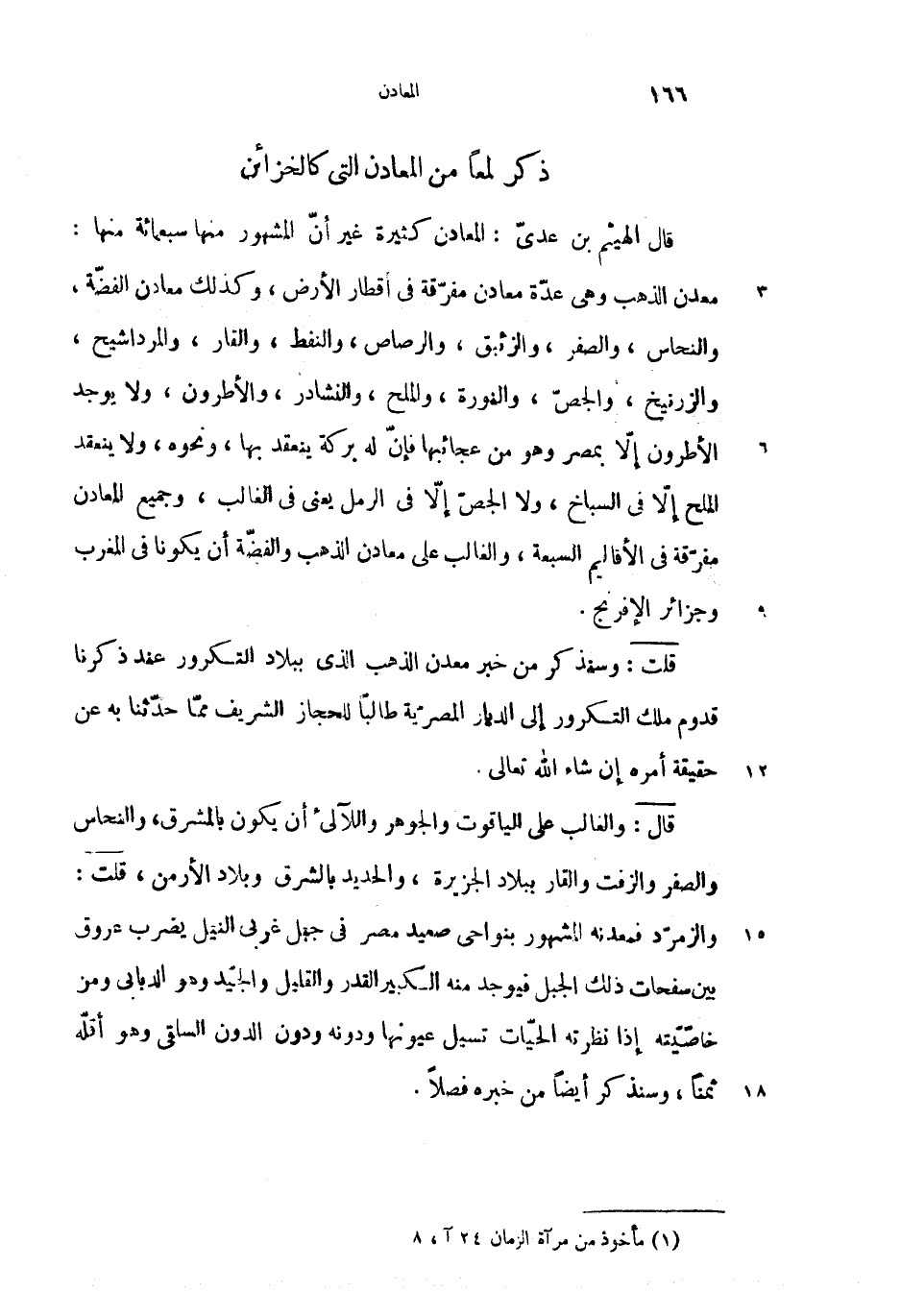 (1) قال الهيثم بن عدىّ: المعادن كثيرة غير أنّ المشهور منها سبعمائة منها: