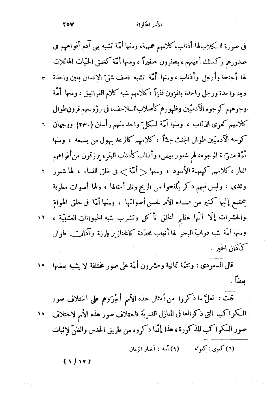 قلت: لعلّ ما ذكروا من أمثال هذه الأمم أجروهم على اختلاف صور الكواكب التى ذكرناها فى المنازل القمريّة فاختلاف صور هذه الأمم لاختلاف صور الكواكب المذكورة، هذا إنّما ذكروه من طريق الحدس والظنّ لإثبات