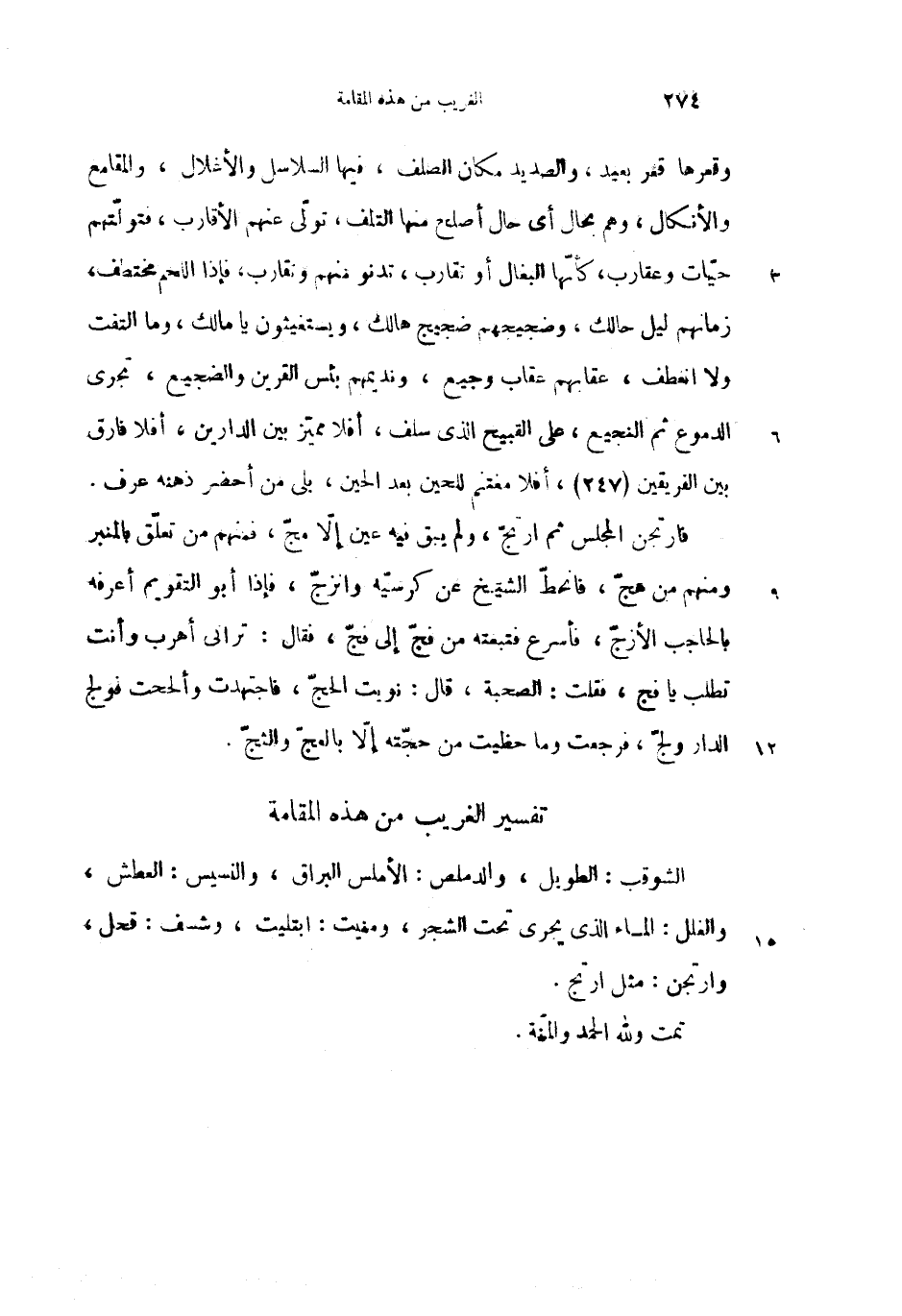 تفسير الغريب من هذه المقامة