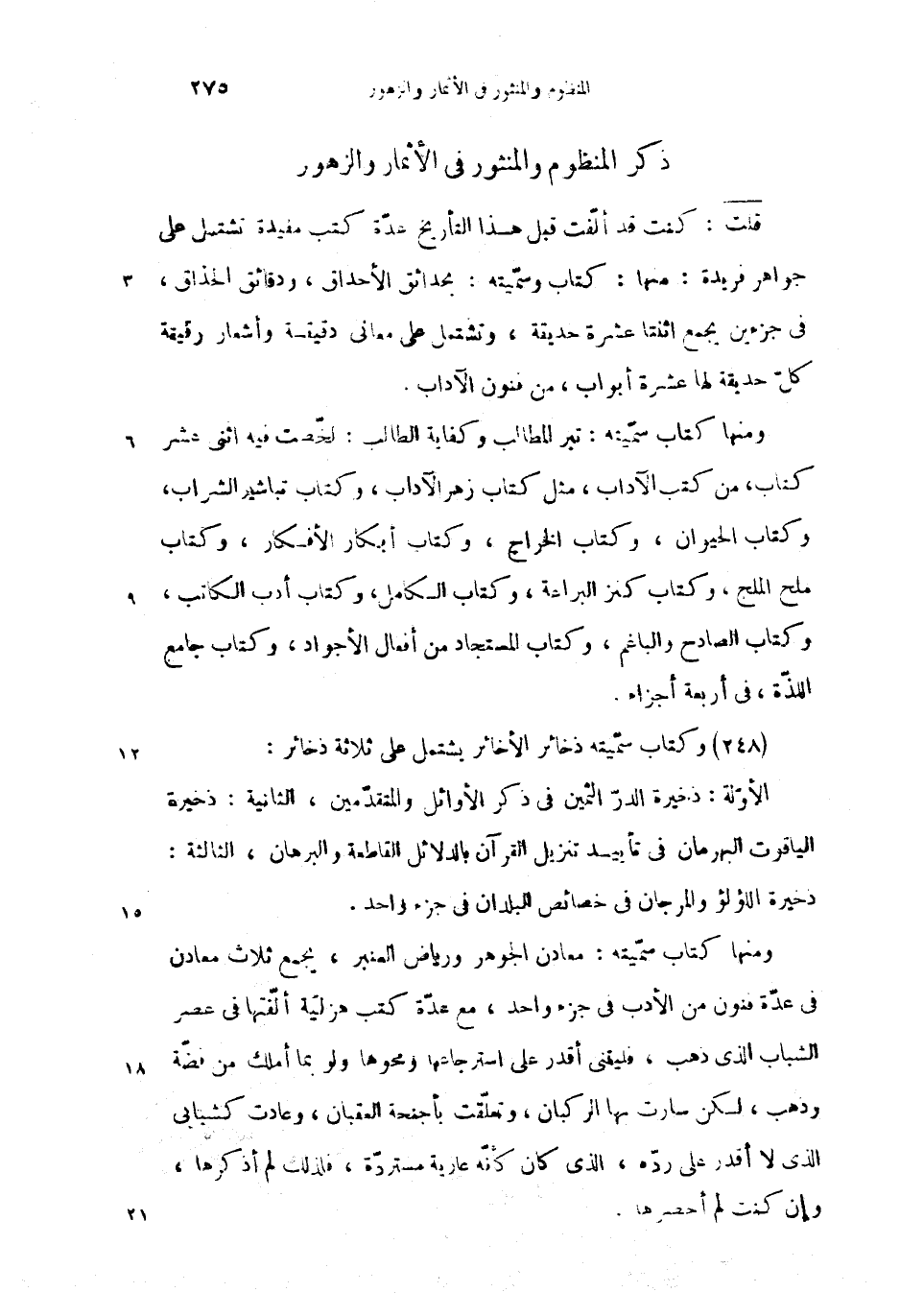 ذكر المنظوم والمنثور فى الأثمار والزهور
